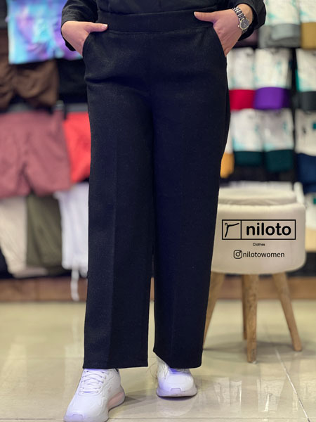 شلوار فوتر دو نخ نیم بگ مشکی(160100)