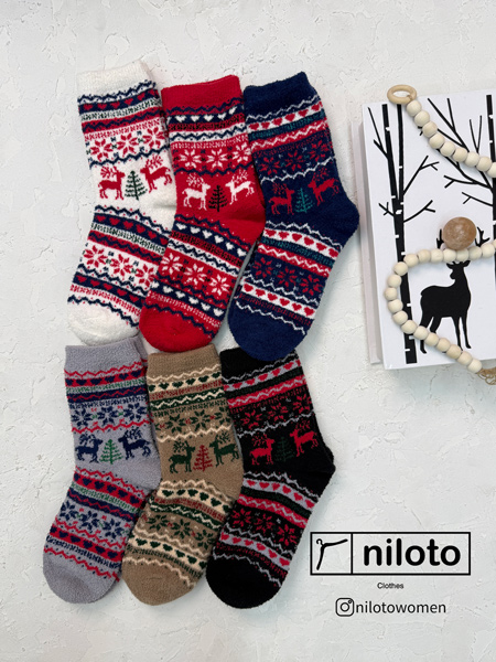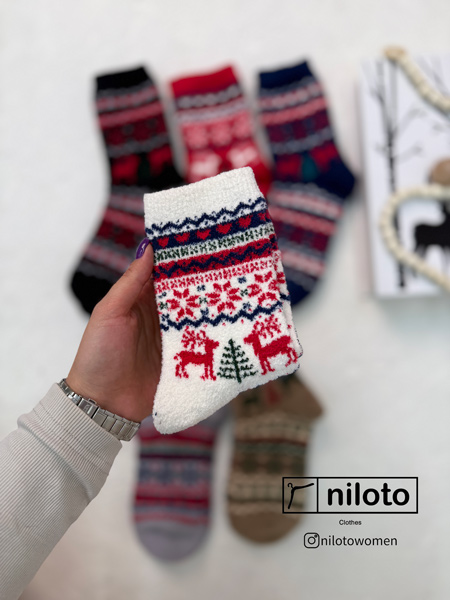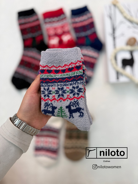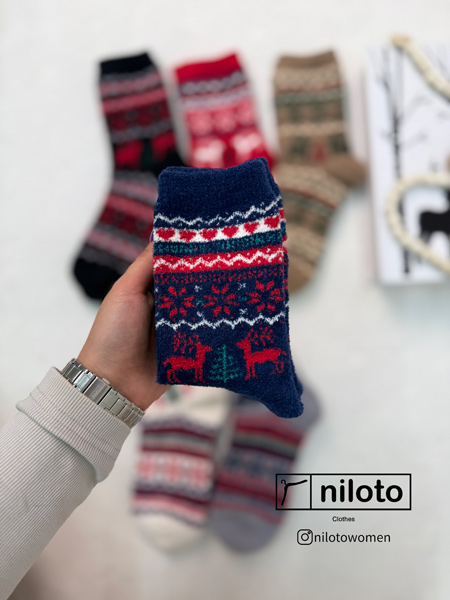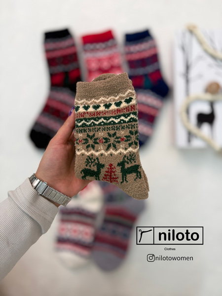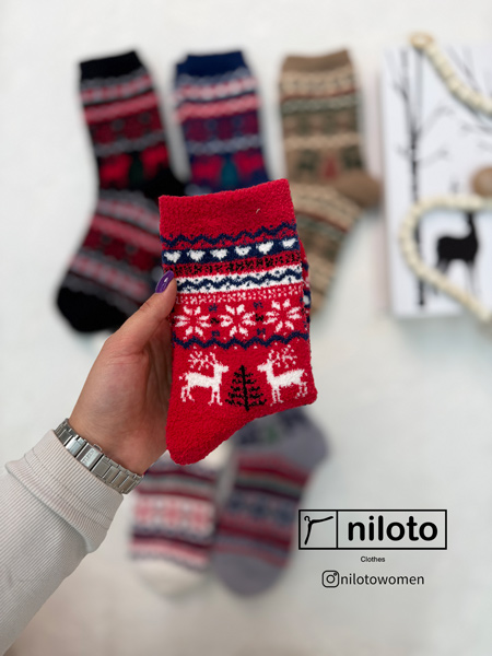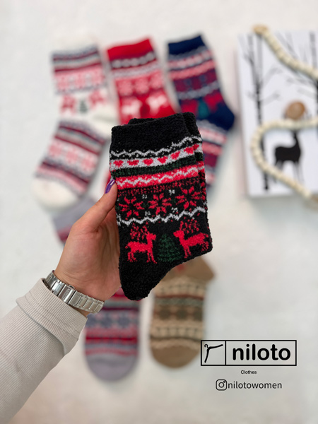 جوراب بوکله طرحدار ضخیم وارداتی طرح کریسمس